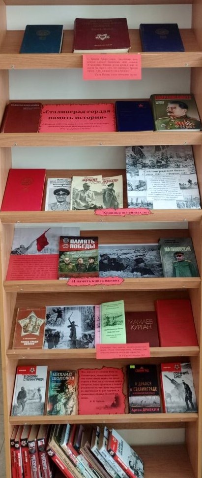 2 февраля в Салтыковской библиотеке прошёл исторический час «Сталинград — символ мужества и героизма», посвящённый Дню разгрома советскими войсками немецко-фашистских войск в Сталинградской битве.