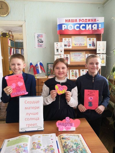 6 марта в Большеижморской библиотеке совместно со школой прошёл праздничный концерт. В этот праздник зрители услышали стихи и музыкальные поздравления от обучающихся и педагогов нашей школы — о весне, о женщинах, о матерях и,