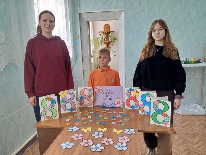 Накануне праздника 8 Марта в библиотеке села Ушинка состоялся час общения «Человек, на котором держится дом» и мастер‑класс «Открытка для мамы».