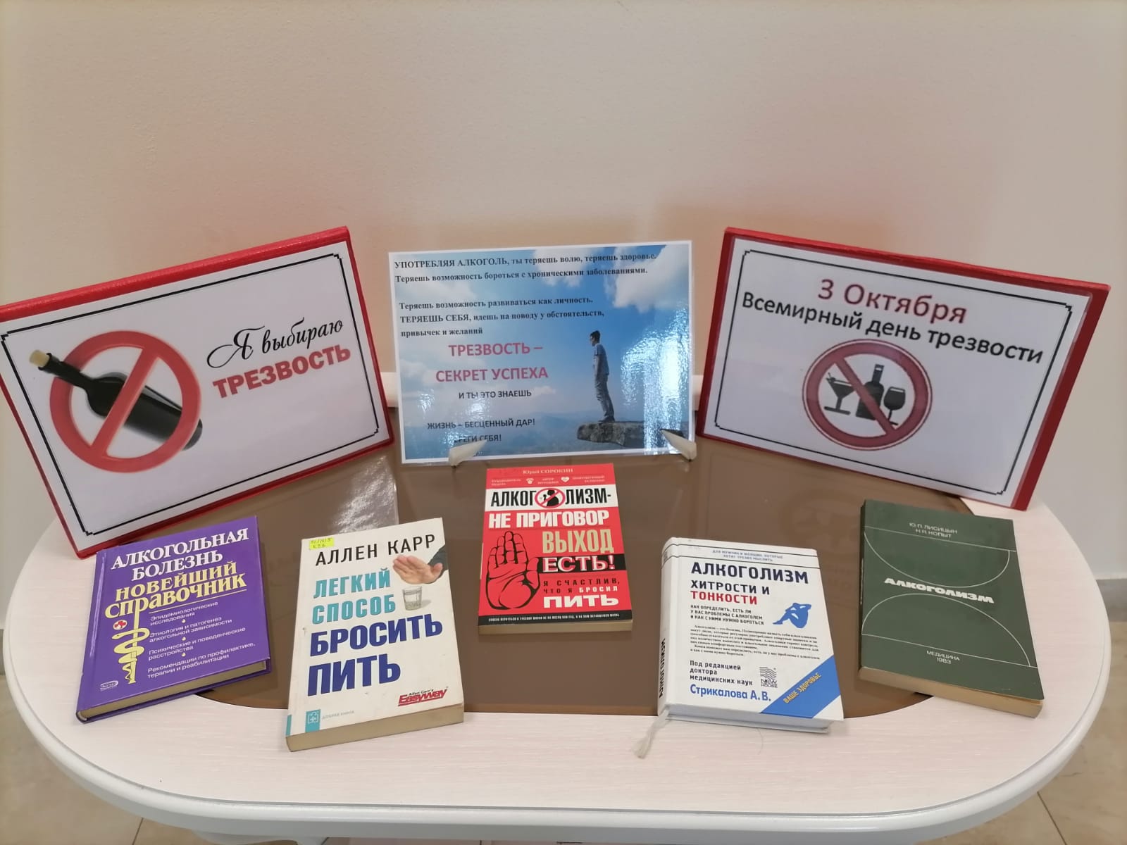 В честь этого праздника в Центральной библиотеке оформлена книжная выставка «Я выбираю трезвость». На выставке представлены книги, рассказывающие о разрушительной силе алкоголя, о том непоправимом вреде, который он наносит человеку, семье, обществу, о причинах