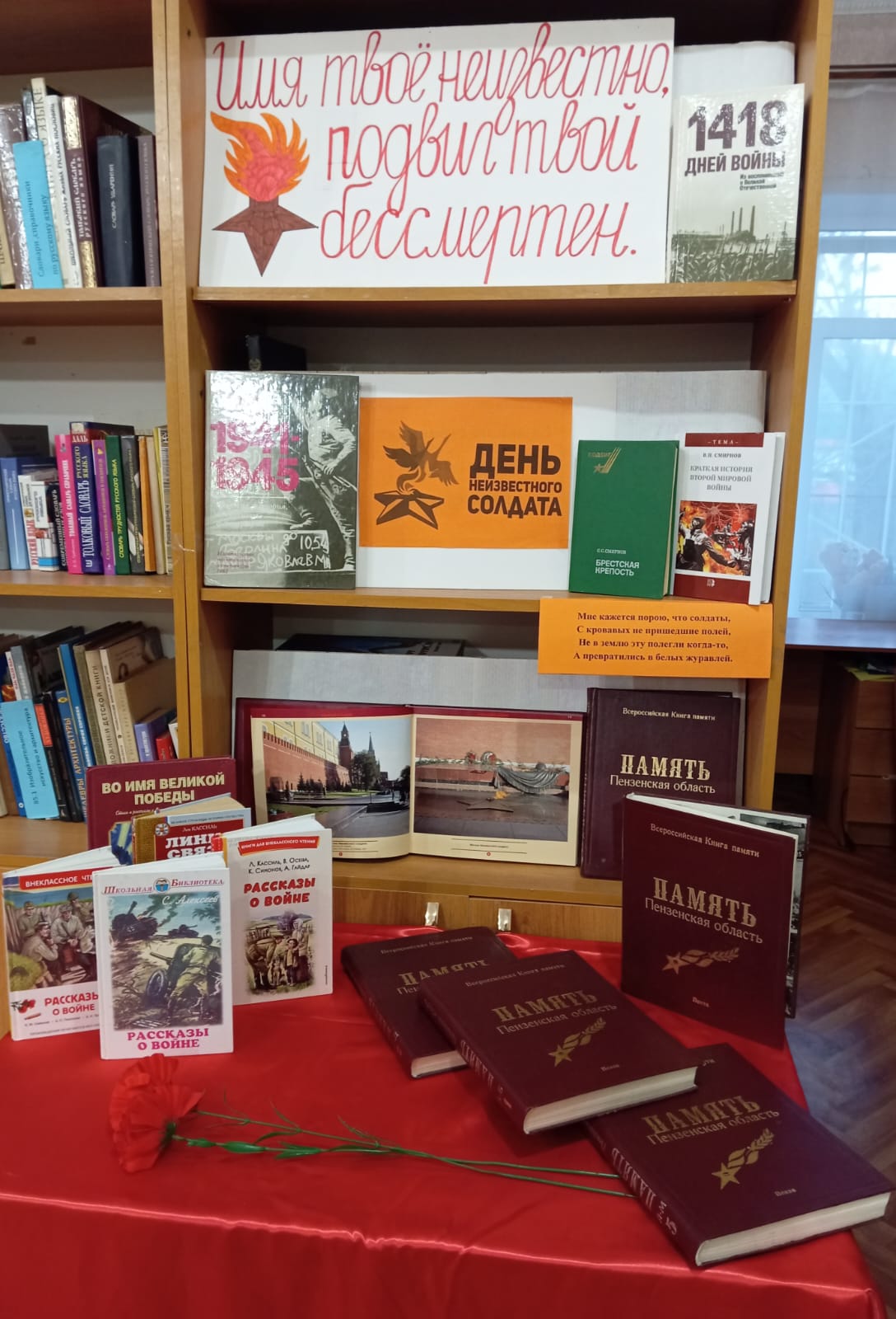 В Детской библиотеке оформлена книжная выставка «Имя твоё неизвестно, подвиг твой бессмертен». На выставке представлены документальные и художественные книги, рассказывающие о подвигах сол